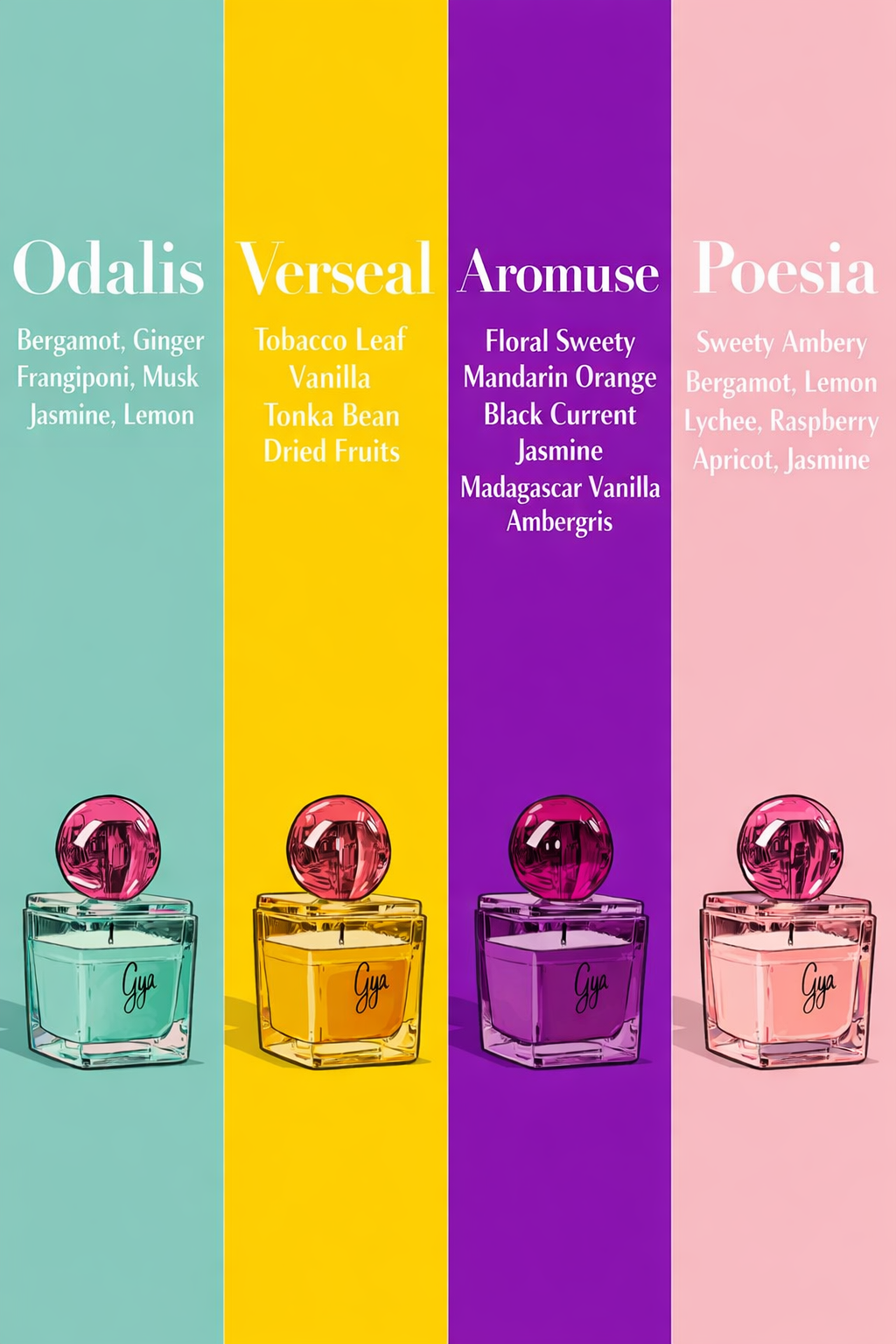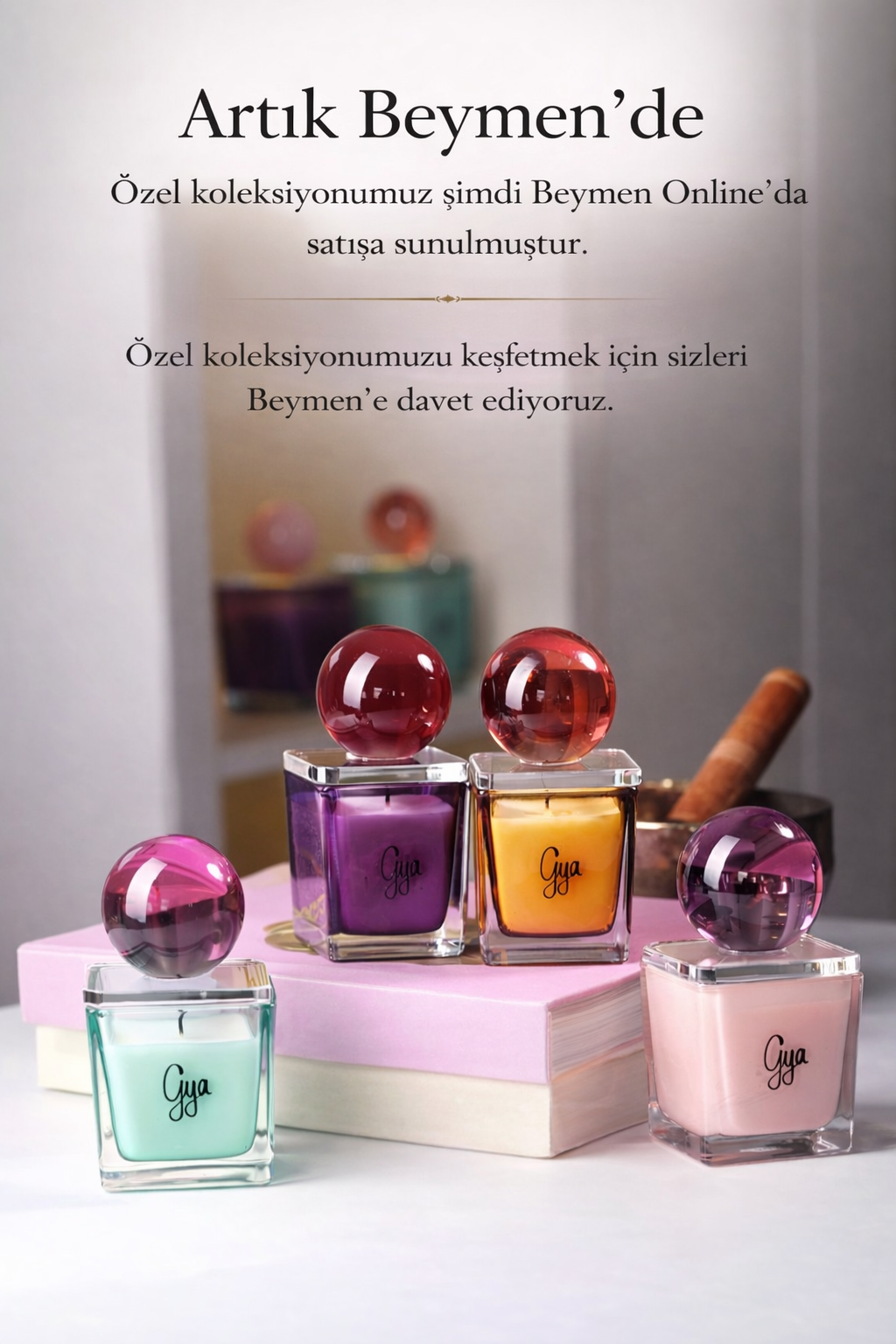 GYA Candle Art’ın ilk koleksiyonu, doğanın en saf ve zarif kokularını evinize taşıyor. Her biri doğal soya balmumundan üretilen el yapımı kokulu mumlarımız, yaşam alanlarınıza sıcaklık, huzur ve estetik bir dokunuş katıyor. Farklı esans seçenekleri, yüksek kaliteli doğal içerikler ve sürdürülebilir üretim anlayışıyla hazırlanan GYA mumları, her anınıza zarafet kazandırır. El işçiliğiyle üretilen cam tasarımlarımız ve doğadan ilham alan renk tonlarımız, ev dekorunuza uyum sağlar. GYA Candle Art ile doğallığın, sadeliğin ve lüksün birleştiği benzersiz bir koku deneyimini keşfedin.